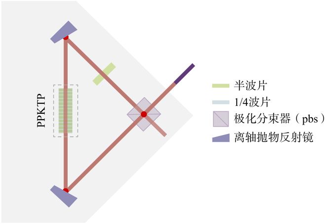 纠缠源团队设计了离轴凹反镜共焦系统,将环外2个用于聚焦和共焦的透镜转化为反射镜,反射镜本身存在消色差的优势,避免了透镜对光的颜色的敏感度。纠缠源团队还通过设计将透镜结合到Sagnac环中,大大减少了系统设计的复杂度,提高了稳定性。