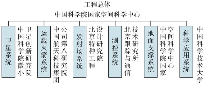 2011年12月14日,中国科学院在北京召开会议,审议确定了大系统组织管理机制,由首席科学家和工程总师带领,协调指挥6大系统,明确了工程研制建设的主要问题、工程的总体计划安排(图1)。会议还确定了卫星研制的工程大总体初步方案、主要技术指标、研制周期和进度安排以及预算等。