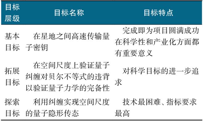 在“921”工程项目的基础上,为提高卫星的国际科研竞争力,中国科大量子团队设立了3个层级的科学目标:星地高速QKD、星地量子纠缠分发和地星隐形传态(表1)。通过设立不同层级的科学目标,科研团队的任务导向更加明确,卫星工程的实施紧密围绕这些目标展开,各系统需严格遵循科学技术指标,并积极协同调整,以确保任务的顺利完成。